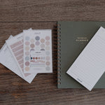 The 2025 Reset Gift Set ($83 value) includes The Self-Care Planner ($40 value), List Notepad ($16 value), Work Sticker Set ($9 value), Essentials Sticker Set ($9 value), and Divider Tabs in White ($9 value).
