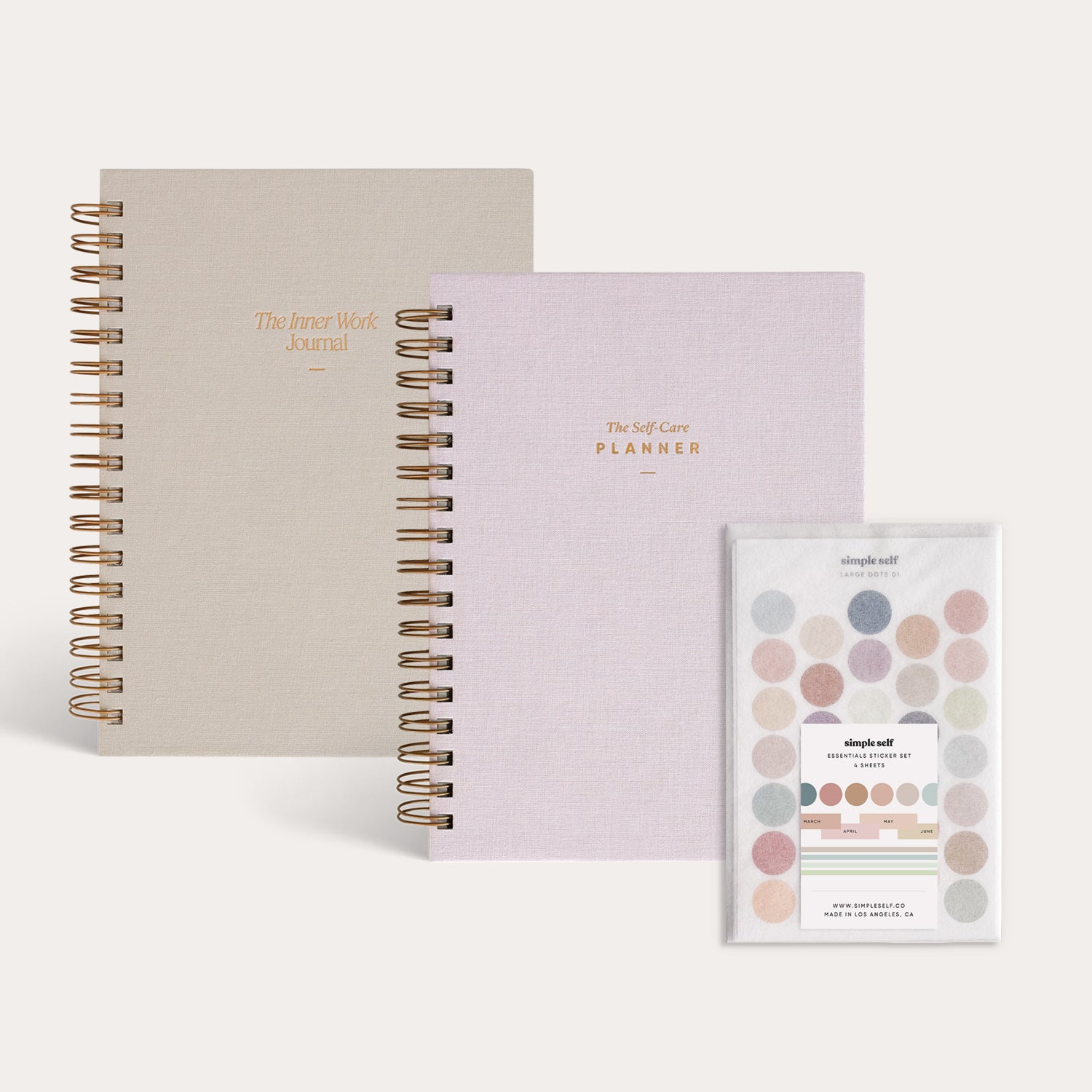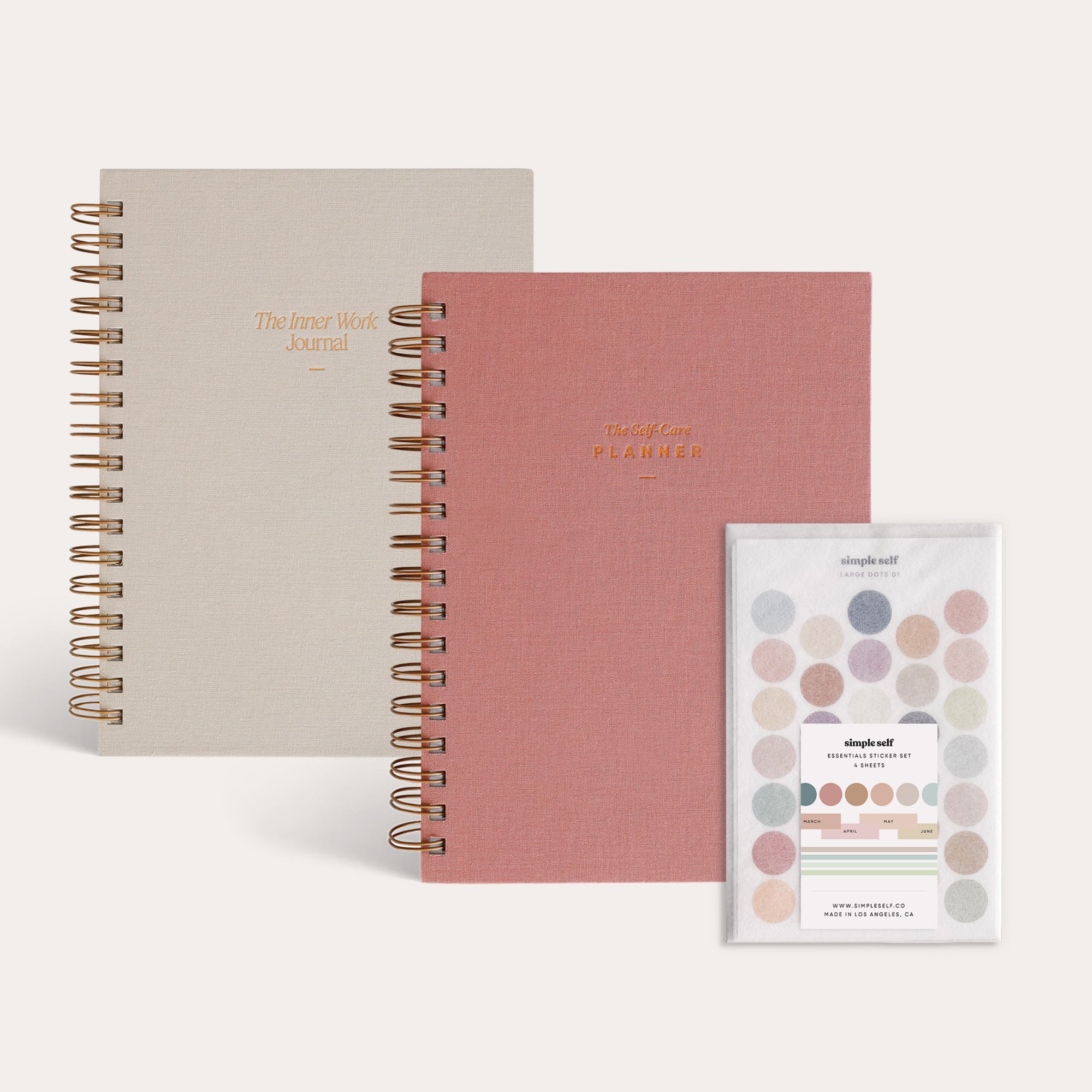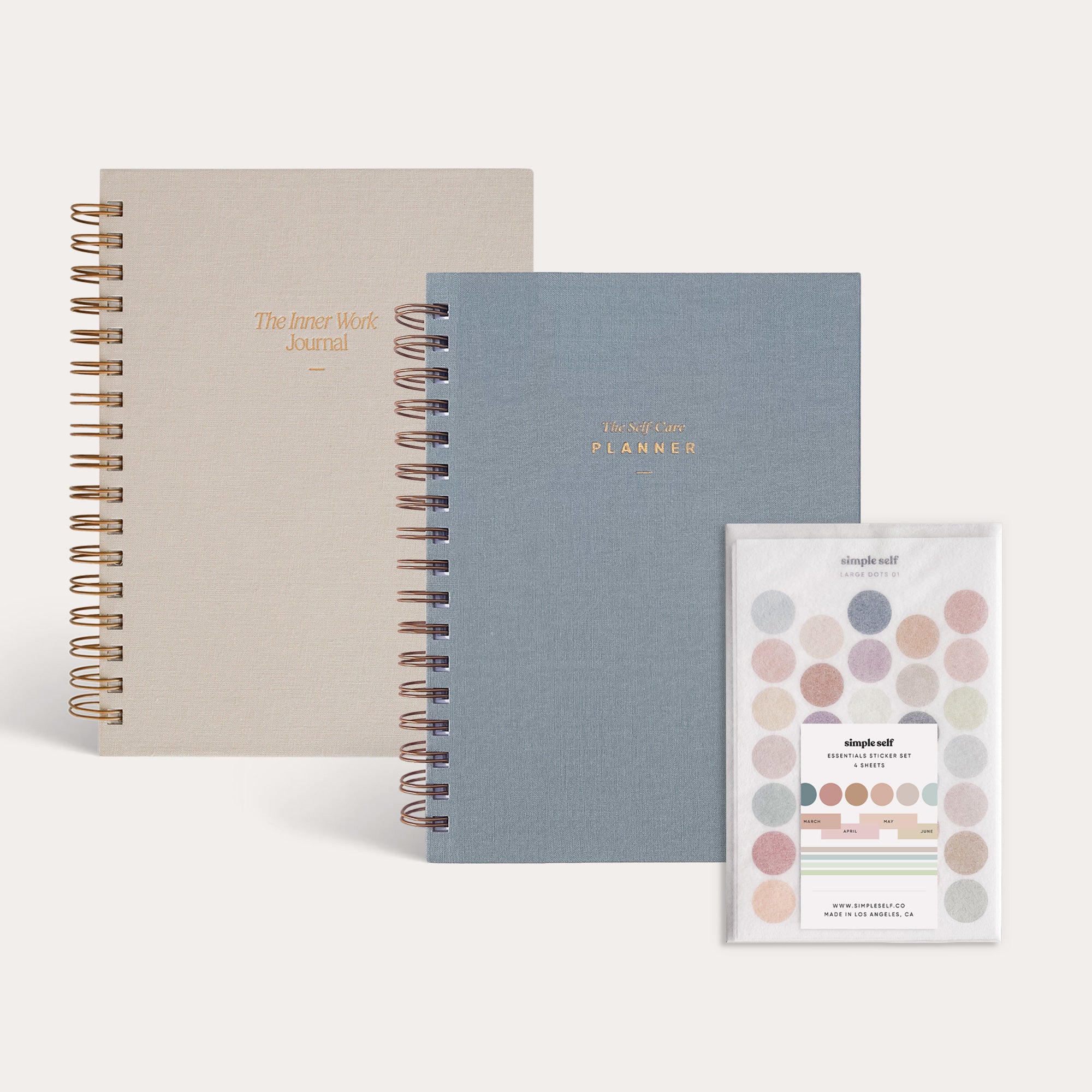 Get all of Simple Self's bestsellers in one beautiful gift set. The Simple Self Starter Set ($89 value) is perfect for those new to Simple Self and looking to start fresh, create new healthy habits, and build better routines. This gift set includes The Self-Care Planner ($40 value), The Inner Work Journal in Sand ($40 value), and The Essentials Sticker Set ($9 value).