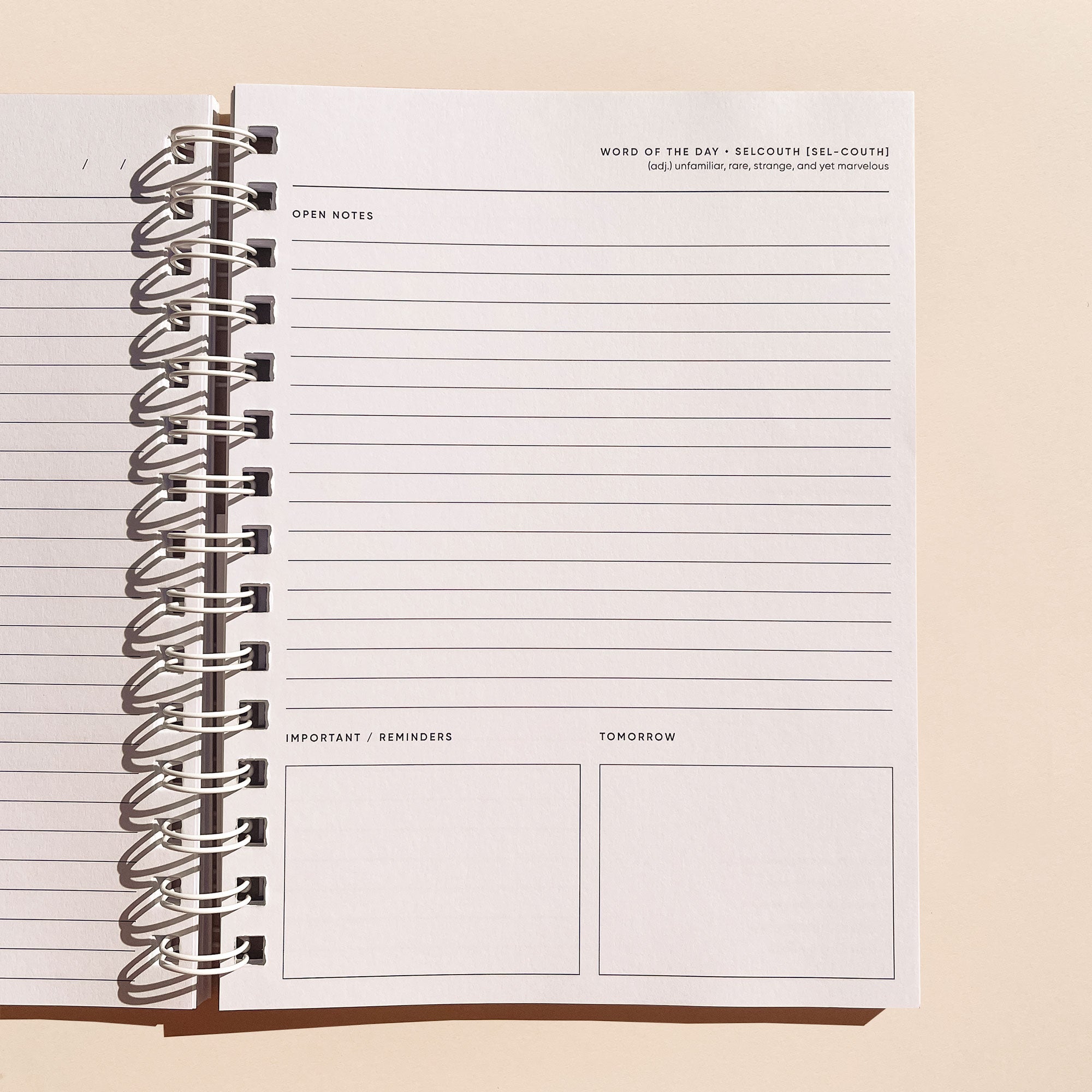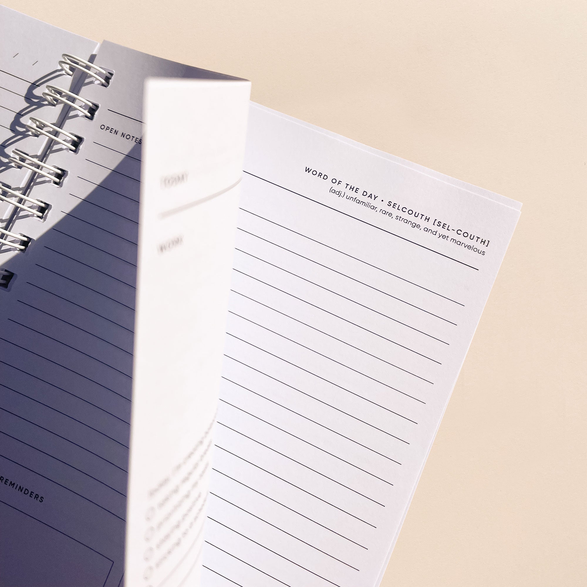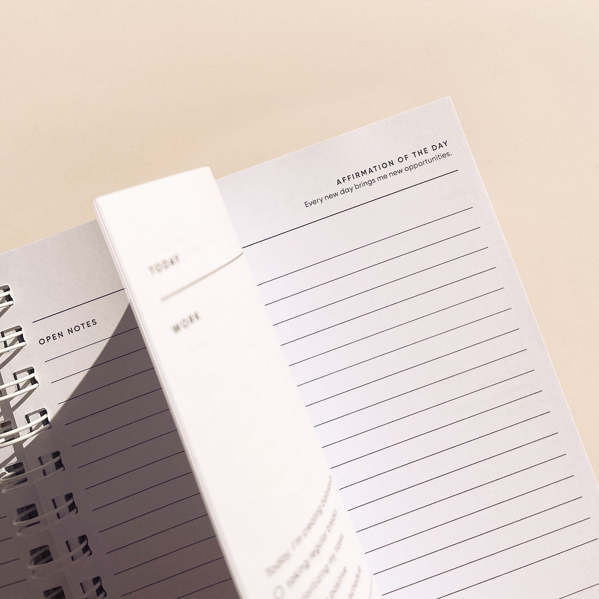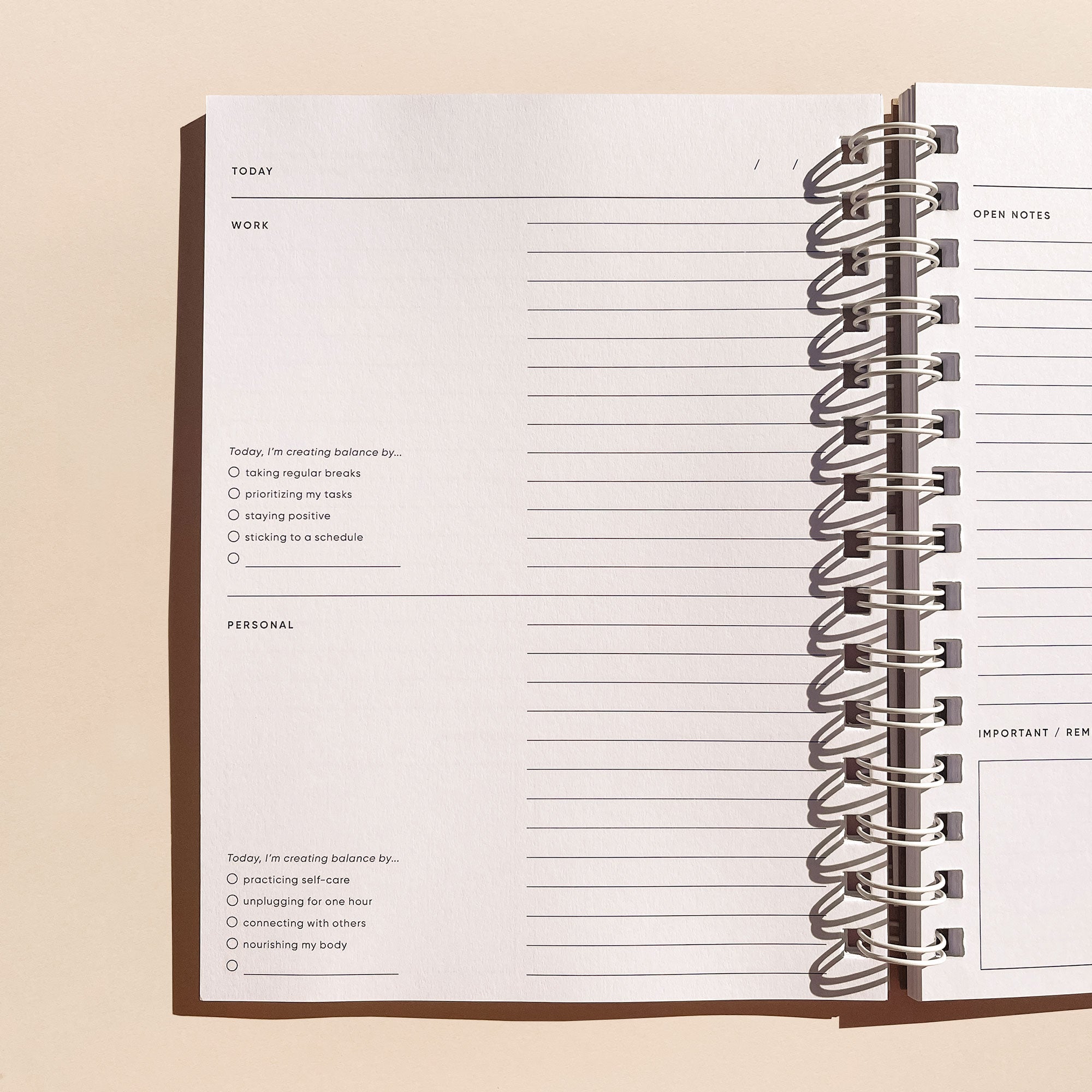 The Balance Notebook is designed to help you create balance in your everyday life while staying organized. Space to separate your work life from your personal life, encouraging affirmations, a unique 'Word of the Day', and motivating daily prompts. Use it as a planner/notebook combination, or pair it with your current planner for extra note-taking space.