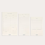 The Minimalist Notepad Bundle ($56 value) includes the Daily Planner Notepad, the Today Notepad, and the List Notepad. Cream paper and blue text are used to be gentle on the eyes and promote a sense of calm. Made in Los Angeles, California using 70lb recycled paper.